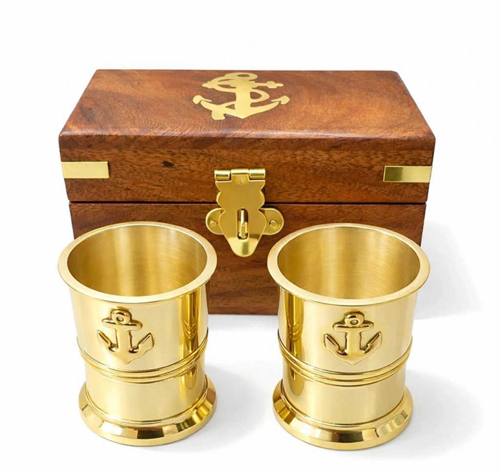 AHŞAP KUTULU 2'Lİ PİRİNÇ SHOT BARDAK SETİ Ürün ÖzellikleriZarafeti ve nostaljiyi sofralarınıza taşıyan Ahşap Kutulu 2'li Pirinç Shot Bardak Seti, denizci ruhunu yansıtan özel tasarımıyla dikkat çekiyor. Yüksek kaliteli pirinç malzemeden üretilen bardaklar, altın sarısı parlaklığı ve üzerindeki işlenmiş çapa figürleriyle zamansız bir şıklık sunar. Set, üzerinde pirinçten çapa amblemi bulunan el yapımı şık ahşap kutusu ile birlikte gönderilir. Kutunun içerisindeki kadife benzeri yumuşak doku, bardakların güvenle saklanmasını sağlar ve sunum kalitesini artırır. Hem dekoratif bir obje olarak vitrinlerinizi süsleyecek hem de özel davetlerinizde fark yaratacak bu set, klasik shot bardaklarından sıkılanlar için mükemmel bir alternatiftir. Deniz tutkunları, koleksiyonerler veya ofis masasında prestijli bir detay arayanlar için ideal olan bu pirinç bardak seti, babalar günü, terfi veya yeni ev hediyesi olarak sunulabilecek en anlamlı parçalardan biridir.Ürün Teknik ÖzellikleriÖzellikAçıklamaBardak MalzemesiYüksek Kaliteli Parlak PirinçKutu MalzemesiDoğal Ahşap ve Pirinç AmblemTasarımDenizci Temalı (Çapa Kabartmalı)Kutu Kilit MekanizmasıKlasik Pirinç Kilit SistemiAdet2 Adet Pirinç Shot Bardağı + 1 Adet Ahşap KutuStilNostaljik, Denizci (Nautical), LüksKullanım Alanıİçecek Sunumu, Dekorasyon, Koleksiyon, HediyelikPaket İçeriği1 adet Ahşap Kutulu 2'li Pirinç Shot Bardak Seti