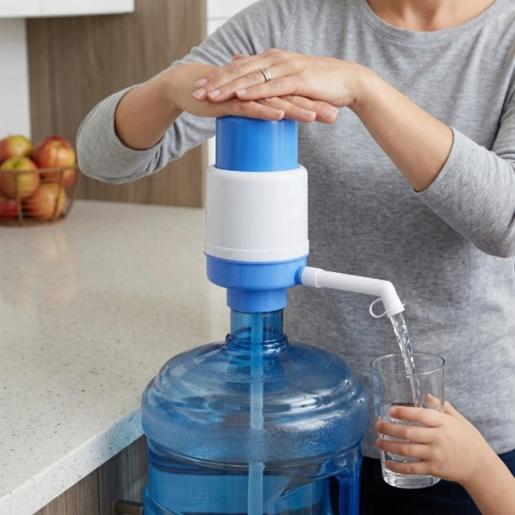 BÜYÜK MANUEL DAMACANA SU POMPASIÜrün ÖzellikleriBüyük Manuel Damacana Su Pompası, evde, ofiste, kampta veya piknikte su kullanımını en pratik ve hijyenik hale getirmek için tasarlanmıştır. Yüksek kaliteli, BPA içermeyen ve gıda ile temasına uygun dayanıklı plastik malzemeden üretilen bu pompa, her basışta maksimum su tahliyesi sağlayarak yorulmanızı engeller. Standart 19 litrelik damacanaların yanı sıra farklı boyutlardaki su şişeleriyle de tam uyum sağlayan evrensel kilit mekanizması, hava sızdırmazlığı sağlayarak suyun tazeliğini korur. Ergonomik basma butonu, yumuşak bir dokunuşla akıcı bir su akışı sunarken, damlatma yapmayan özel musluk ucu sayesinde zeminleriniz her zaman kuru kalır. Montajı ve temizliği oldukça kolay olan bu manuel su pompası, elektrik veya pil gerektirmediği için her koşulda kesintisiz kullanım imkanı sunar. İçerisinde yer alan ayarlanabilir boru sistemi, damacananın dibinde kalan son damla suyu bile kolayca almanıza yardımcı olur. Şık mavi-beyaz tasarımı ve sağlam gövde yapısıyla uzun yıllar boyunca mutfağınızın vazgeçilmez bir parçası olacak bu ürün, ekonomik ve çevre dostu bir su çözümüdür.Ürün Teknik ÖzellikleriÖzellikAçıklamaÜrün AdıBüyük Manuel Damacana Su PompasıUyumluluk19 Litre Standart Damacanalar ve Tüm Büyük Boy ŞişelerMalzemeGıda Sınıfı Polipropilen (BPA İçermez)Çalışma PrensibiManuel Hava Basınçlı Vakum SistemiEk ÖzelliklerKilitli Kapak, Hava Sızdırmaz Conta, Damlatmaz MuslukRenkMavi - BeyazKullanım AlanıEv, Ofis, Okul, Bahçe, Kamp ve Dış MekanlarPaket İçeriği1 Adet Büyük Manuel Su Pompası, 3 Kademeli Uzatılabilir Boru ve Musluk Başlığı