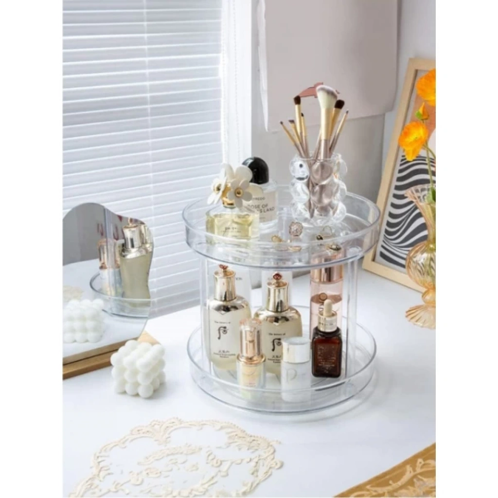ÇOK AMAÇLI DÖNEBİLEN 2 KATLI ORGANİZERÜrün ÖzellikleriÇok amaçlı dönebilen 2 katlı organizer, 360° dönebilme özelliği sayesinde mutfakta, banyoda, makyaj masasında veya ofis ortamında düzeni sağlamak için pratik bir kullanım sunar. 23x22 cm boyutunda tasarlanmış olan bu organizer, dayanıklı ve kaliteli plastik malzemeden üretilmiştir. İki katlı yapısı sayesinde baharatlık, kozmetik ürünleri, temizlik malzemeleri, takı ve daha birçok eşyayı düzenli bir şekilde saklamaya imkân tanır. Döner taban sistemi sayesinde aradığınız ürüne kolayca erişebilirsiniz. Şık ve modern tasarımıyla hem işlevsel hem de dekoratif bir çözüm sunar.Paket İçeriği1 adet Çok Amaçlı Dönebilen 2 Katlı Organizer