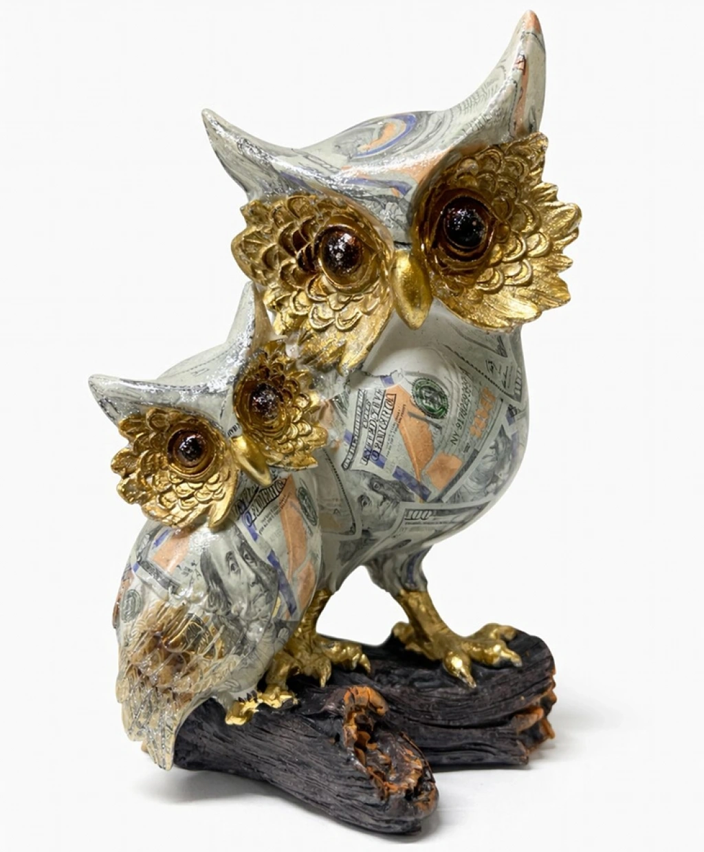 DOLAR BASKILI ÖZEL TASARIM İKİLİ POLYESTER BAYKUŞ Ürün ÖzellikleriDolar baskılı özel tasarım ikili polyester baykuş figürü, dekorasyonda hem estetik hem de anlam arayanlar için güçlü bir alternatif sunar. 18x12 cm ölçülerindeki ideal boyutu sayesinde masa üstü, raf, vitrin, kitaplık, konsol veya ofis masası gibi birçok alanda rahatlıkla kullanılabilir. İkili baykuş figürü; birlik, uyum ve bereketi simgelerken, üzerindeki dolar temalı baskı zenginlik, bolluk ve finansal başarıyı temsil eder. Bu özelliğiyle özellikle iş yeri, ofis, çalışma odası ve mağaza dekorasyonlarında tercih edilen dikkat çekici bir dekoratif objedir. Dayanıklı polyester malzemeden üretilmiş olup uzun ömürlü kullanım sunar ve darbelere karşı dirençlidir. Detaylı tüy dokuları, yüz ifadeleri ve özenle uygulanmış renk geçişleri sayesinde dekorasyona kaliteli ve prestijli bir görünüm kazandırır. Solmaya karşı dirençli yapısı ile uzun süre ilk günkü canlılığını korur. Hem kendiniz için anlamlı bir dekor ürünü olarak hem de sevdiklerinize şık ve sembolik bir hediye alternatifi olarak öne çıkar.Paket İçeriği1 adet Dolar Baskılı Özel Tasarım İkili Polyester Baykuş Figürü (18x12 cm)