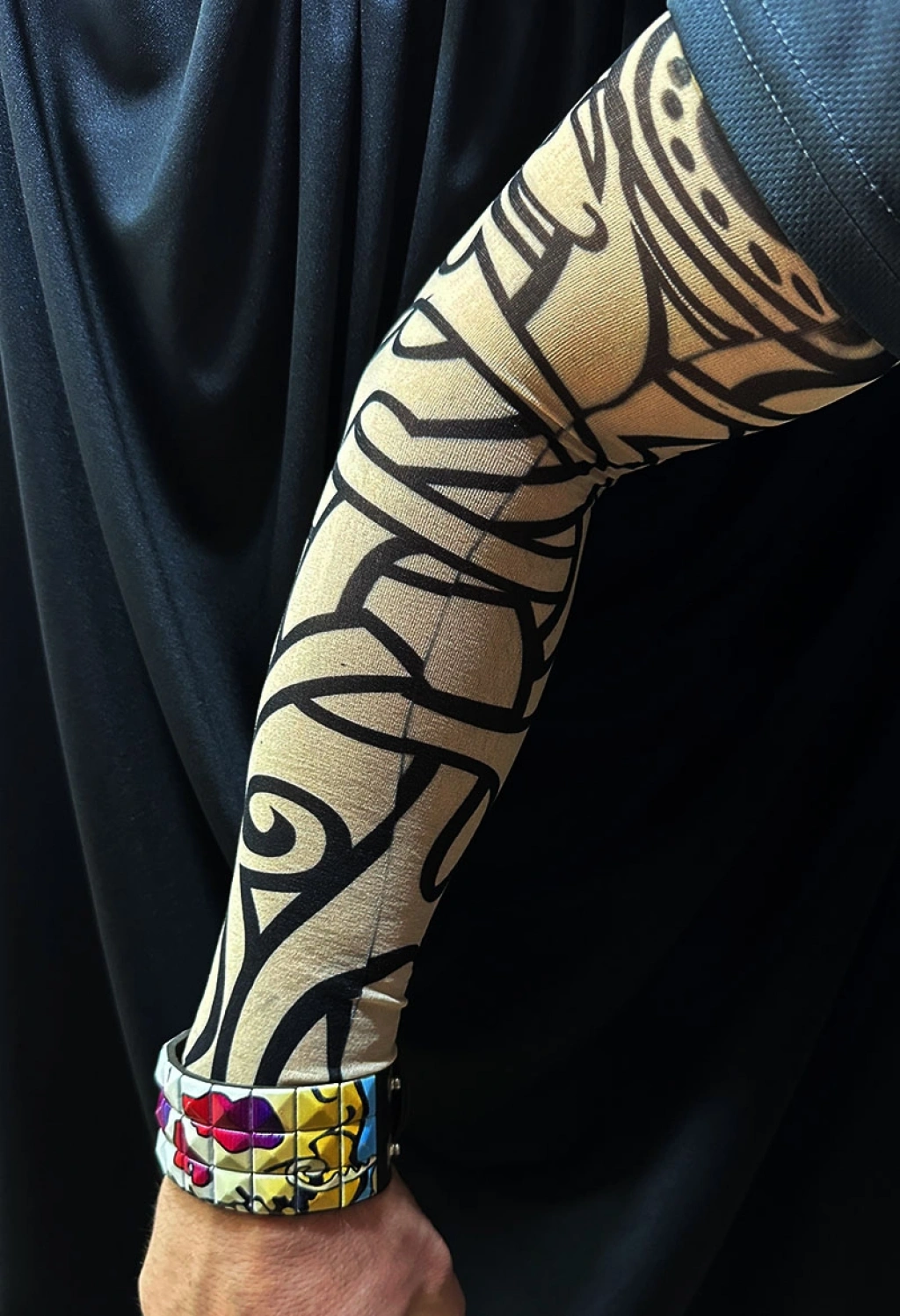 GİYİLEBİLİR KOL DÖVMESİ 3D BASKILI 2 ADET - MODEL 12Ürün ÖzellikleriGiyilebilir kol dövmesi 3D baskılı model 12, gerçek dövme görünümünü acı çekmeden ve kalıcı olmadan denemek isteyenler için ideal bir çözümdür. Kolunuza taktığınız anda son derece gerçekçi bir dövme etkisi oluşturan bu ürün, detaylı 3D baskı teknolojisi sayesinde doğal ve dikkat çekici bir görünüm sunar. Likralı ve esnek yapısı kolu sıkıca sararak kayma yapmaz, dışarıdan bakıldığında giyilebilir olduğu neredeyse fark edilmez. Nefes alan kumaşı cildi rahatsız etmez ve uzun süreli kullanımlarda konfor sağlar. Sağ ve sol kol için ayrı ayrı tasarlanan set, standart beden ölçüsüyle farklı kol yapılarına uyum gösterir. Tek kullanımlık değildir ve defalarca kullanılabilir olması sayesinde hem günlük kombinlerde hem de özel etkinliklerde pratik bir stil alternatifi sunar. İstediğiniz zaman takıp istediğiniz zaman çıkarabileceğiniz bu giyilebilir dövmeler, sahne performansları, fotoğraf çekimleri ve tarzını anında değiştirmek isteyenler için güçlü bir tamamlayıcıdır.Paket İçeriği2 adet Giyilebilir Kol Dövmesi 3D Baskılı - Model 12