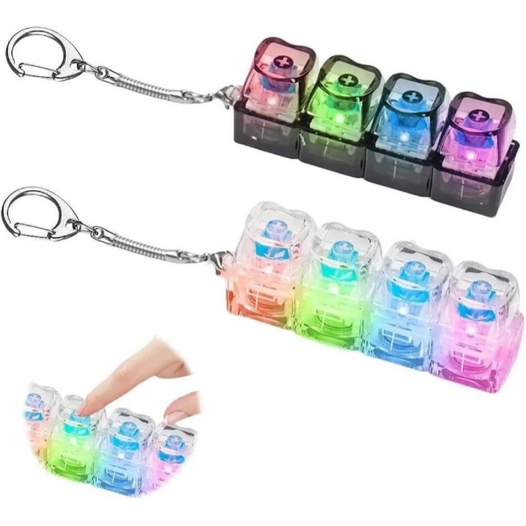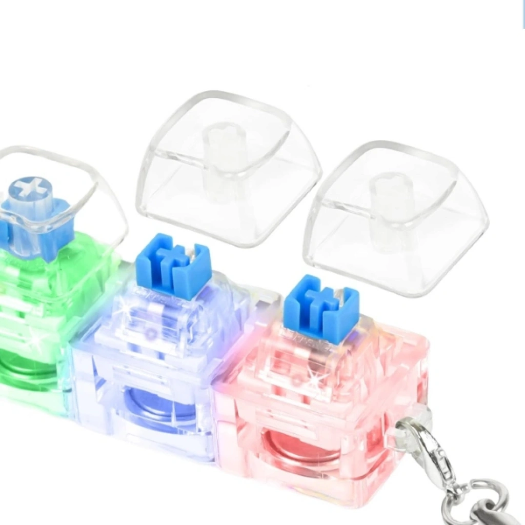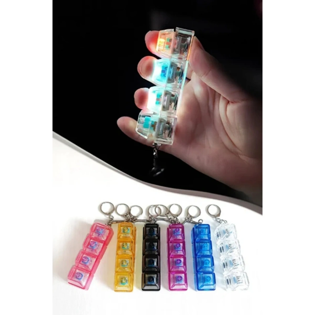 IŞIKLI KLAVYE TUŞU SWİTCH ANAHTARLIKÜrün ÖzellikleriIşıklı Klavye Tuşu Switch Anahtarlık, mekanik klavye tuş hissini mini boyutta sunan eğlenceli ve dikkat çekici bir aksesuardır. Basıldığında ışık efekti veren tasarımı sayesinde hem görsel hem de dokunsal bir deneyim sunar. Mini formdaki switch tuş mekanizması sayesinde tıklama hissi verir ve gün içinde elde oynanabilen bir fidget stres oyuncağı anahtarlık olarak kullanılabilir. Şeffaf gövde yapısı ile iç mekanizma detayları görülebilir ve ışıklı tasarımı ile karanlık ortamlarda dikkat çekici bir görünüm sağlar. Anahtarlık halkası sayesinde çanta, anahtar veya aksesuar olarak rahatlıkla taşınabilir. Ürün karışık renklerde gönderilir; renk tercihi yapılamaz.Ürün Teknik Özellikleri Özellik Açıklama Ürün Adı Işıklı Klavye Tuşu Switch Anahtarlık Tasarım Mekanik klavye tuşu formu Özellik Basınca duyarlı ışık efekti Kullanım Fidget stres oyuncağı ve anahtarlık Renk Karışık renklerde gönderilir Paket İçeriği1 adet Işıklı Klavye Tuşu Switch Anahtarlık