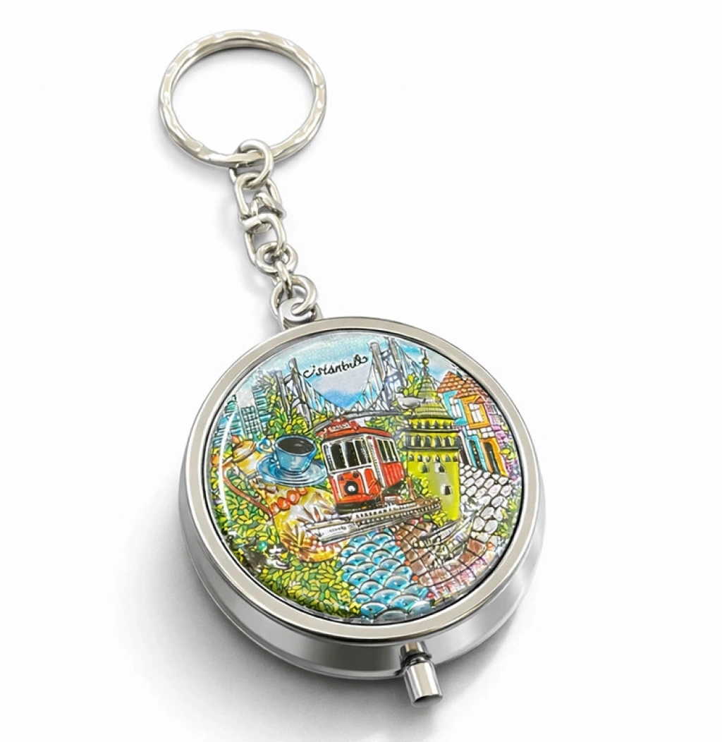 İSTANBUL TEMALI KÜLLÜK ANAHTARLIK Ürün Özellikleriİstanbul Temalı Küllük Anahtarlık, kompakt tasarımı ve çok amaçlı kullanımı ile pratik bir aksesuar seçeneğidir. 5x5 cm ölçüsündeki yuvarlak formu sayesinde cepte ve çantada kolay taşınabilir. Üzerinde yer alan İstanbul temalı tasarım detayı ürüne estetik bir görünüm kazandırırken, açılır kapaklı yapısı ile küçük boy taşınabilir küllük olarak kullanılabilir. Metal gövde yapısı sayesinde dayanıklı kullanım sunar ve anahtarlık zinciri ile anahtarlarınıza kolayca takılabilir. Hem hatıralık hem de fonksiyonel bir küllük anahtarlık modeli olarak günlük kullanım için pratik bir alternatiftir.Ürün Teknik Özellikleri Özellik Açıklama Ürün Adı İstanbul Temalı Küllük Anahtarlık Ölçü 5 x 5 cm Tasarım İstanbul temalı kapaklı model Kullanım Anahtarlık ve taşınabilir küllük Malzeme Metal gövde Paket İçeriği1 adet İstanbul Temalı Küllük Anahtarlık