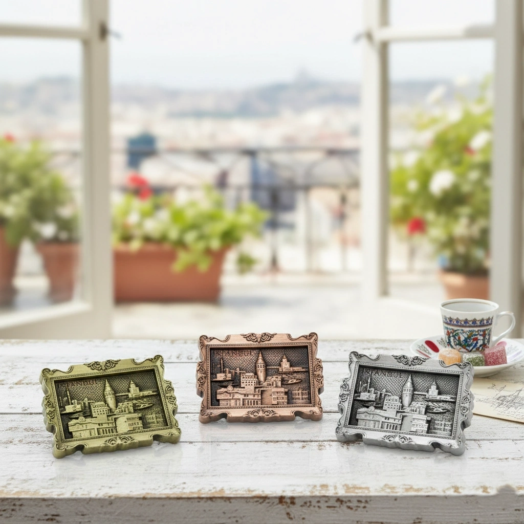 İstanbul Yöresel Magnet Model 14Ürün İçeriğiİstanbul Yöresel Magnet Model 14, şehrin binlerce yıllık tarihini ve kültürel dokusunu evlerinize taşıyan zarif bir hatıra objesidir. İstanbul’un karakteristik figürleriyle zenginleştirilen bu özel tasarım, metalin asaletini geleneksel motiflerle buluşturur. Hem günlük kullanımda buzdolaplarınızı süsleyecek şık bir aksesuar hem de şehre dair anılarınızı taze tutacak anlamlı bir koleksiyon parçasıdır.Ürün ÖzellikleriÖzellikAçıklamaModelModel 14Temaİstanbul Yöresel ve Kültürel FigürlerMateryalYüksek Kaliteli Dayanıklı MetalÖzellikGüçlü Arka MıknatısYüzey UyumuBuzdolabı, Metal Panolar ve Tüm Metal YüzeylerKullanım AmacıDekoratif Hatıra / Turistik HediyelikDayanıklılıkUzun Ömürlü, Renk Solmasına Karşı DirençliPaket İçeriği1 Adet İstanbul Yöresel Magnet Model 14