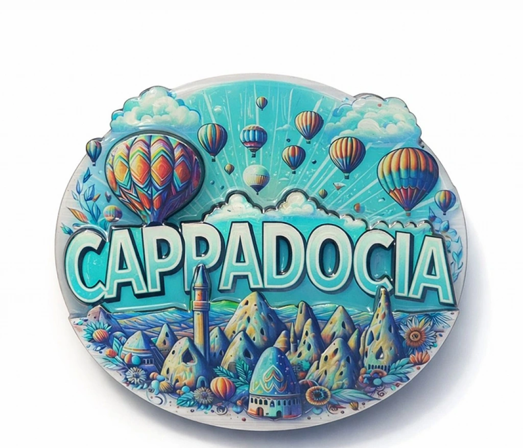 KAPADOKYA TEMALI AHŞAP BUZDOLABI MAGNETİ MODEL 6Ürün ÖzellikleriKapadokya Temalı Ahşap Buzdolabı Magneti Model 6, Kapadokya’nın eşsiz doğasını ve kültürel atmosferini yansıtan özel bir tasarıma sahiptir. Peri bacaları, sıcak hava balonları ve bölgeye özgü manzara detayları, yüksek çözünürlüklü baskı tekniği ile ahşap yüzey üzerine özenle uygulanmıştır. 8x8 cm ölçüsü sayesinde kompakt bir kullanım sunar; buzdolabı, metal pano, ofis dolabı gibi manyetik yüzeylerde hem şık hem de dengeli bir görünüm oluşturur. Doğal ahşap malzemeden üretilmiş olması ürüne sıcak ve otantik bir hava kazandırırken, aynı zamanda dayanıklı yapısı ile uzun süreli kullanım imkânı sağlar. Canlı renkleri solmaya karşı dirençlidir ve günlük kullanımda estetik görünümünü korur. Arka kısmında yer alan güçlü mıknatıs, yüzeye sağlam şekilde tutunarak düşme veya kayma riskini azaltır. Kapadokya’yı ziyaret edenler için anlamlı bir hatıra, sevdiklerine yöresel ve dekoratif bir hediye arayanlar için ise zarif ve kalıcı bir seçenek sunar. Ev ve ofis dekorasyonuna kültürel bir dokunuş katmak isteyenler için idealdir.Paket İçeriği1 adet Kapadokya Temalı Ahşap Buzdolabı Magneti Model 6