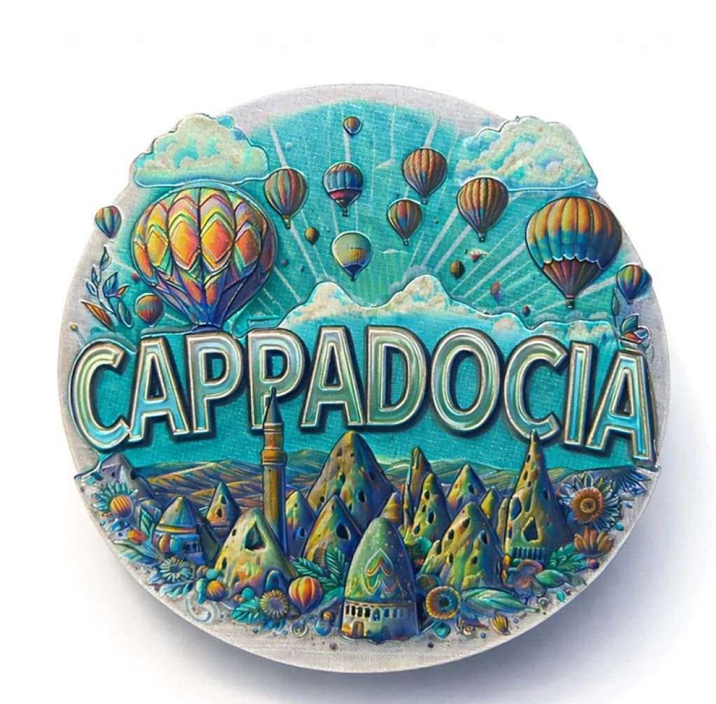 KAPADOKYA TEMALI SİLİKON BUZDOLABI MAGNETİ MODEL 6Ürün ÖzellikleriKapadokya Temalı Silikon Buzdolabı Magneti Model 6, Kapadokya’nın peri bacaları ve sıcak hava balonlarıyla özdeşleşmiş eşsiz atmosferini yuvarlak formda, canlı renkler ve detaylı çizimlerle yansıtan özel bir tasarıma sahiptir. 8x8 cm ölçüsü sayesinde dengeli ve dikkat çekici bir görünüm sunarken, buzdolabı, metal pano, ofis dolabı veya manyetik yüzeylerde dekoratif bir dokunuş sağlar. Silikon malzemeden üretilmiş olması magnete esneklik kazandırır, darbelere karşı dayanıklıdır ve kırılma riski olmadan uzun süreli kullanım imkânı sunar. Güçlü mıknatıs yapısı sayesinde notlarınızı, fotoğraflarınızı veya alışveriş listelerinizi güvenle sabitlemenize yardımcı olur. Yüksek kaliteli baskısı, renklerin solmadan uzun süre canlı kalmasını sağlar. Hem ev hem ofis kullanımına uygun olan bu magnet, Kapadokya temalı hediyelik eşya arayanlar için estetik ve anlamlı bir seçenek oluşturur; koleksiyonluk magnet sevenler için de ideal bir üründür.Paket İçeriği1 adet Kapadokya Temalı Silikon Buzdolabı Magneti Model 6