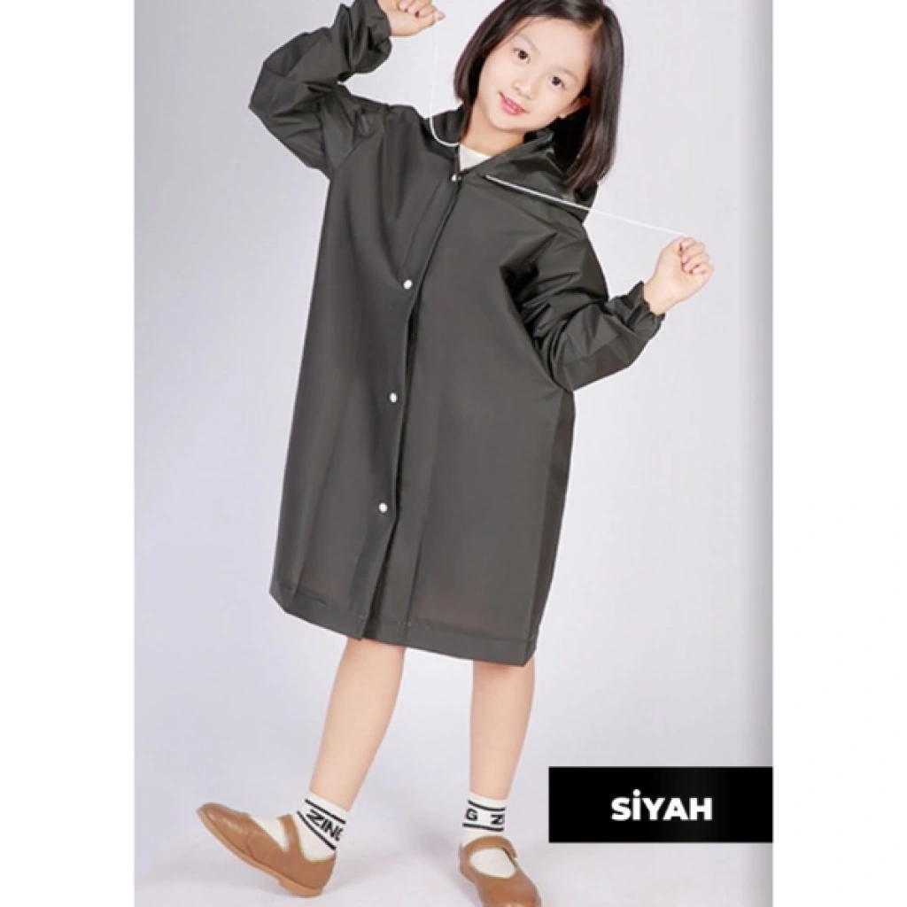 KAPÜŞONLU ÇOCUK YAĞMURLUKÜrün ÖzellikleriKapüşonlu çocuk yağmurluk, yağmurlu ve rüzgârlı havalarda çocukların konforunu ve korunmasını ön planda tutacak şekilde tasarlanmıştır. Su geçirmez EVA kumaştan üretilen yapısı sayesinde yağmur suyunu içeri almaz ve çocukların kuru kalmasına yardımcı olur. Hafif ve esnek dokusu, çocukların hareketlerini kısıtlamadan rahat bir kullanım sunar. Çıt çıt düğmeli ön kapama sistemi sayesinde kolayca giyilip çıkarılabilir, pratik yapısıyla ebeveynler için de kullanım kolaylığı sağlar. Kapüşonlu tasarımı baş ve boyun bölgesini rüzgâr ve yağmurdan korurken, günlük kullanımda rahat bir alternatif oluşturur. Standart beden olarak üretilmiştir ve farklı yaş gruplarındaki çocuklara uyum sağlayacak ölçülere sahiptir. Renk seçimi yapılamaz, ürün görsellerde yer alan renklerden karışık olarak gönderilir. Okulda, parkta, gezilerde ve günlük dış mekân aktivitelerinde çocuklar için uygun ve güvenilir bir yağmurluk seçeneğidir.Paket İçeriği1 adet kapüşonlu çocuk yağmurluk (standart beden, karışık renk)