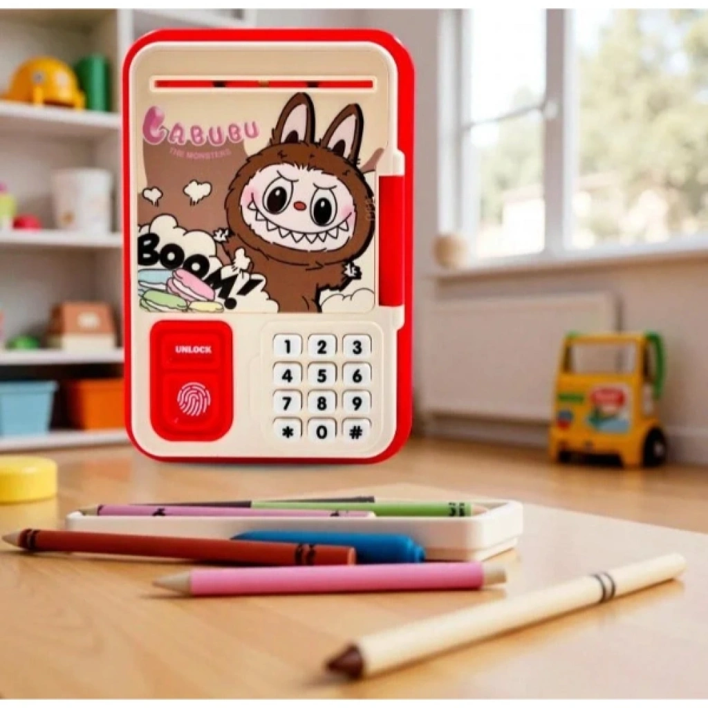 LABUBU DESENLİ ŞİFRELİ ATM KUMBARAÜrün ÖzellikleriLabubu Desenli ATM Kumbara, çocuklara para biriktirme alışkanlığını eğlenceli ve interaktif bir oyun deneyimiyle kazandırmak için tasarlanmış yenilikçi bir oyuncaktır. Popüler Labubu karakteri ile süslenmiş bu sevimli kumbara, gerçek bir bankamatik gibi çalışan elektronik şifreleme sistemi sayesinde birikimleri güvenli bir şekilde saklar. Üst kısmında bulunan otomatik kağıt para çekme mekanizması, parayı yavaşça içeri çekerek çocukların ilgisini toplarken, madeni paralar için özel bir giriş bölümü de sunar. Işıklı ve sesli uyarı sistemi, şifre girildiğinde veya işlemler sırasında kullanıcıyı bilgilendirerek gerçekçi bir ATM deneyimi sağlar. Varsayılan şifresiyle kolayca kurulabilen ve istendiğinde değiştirilebilen güvenlik ayarları sayesinde çocukların kişisel bir "kasa" sahibi olmalarını sağlar. Dayanıklı ABS plastik malzemeden üretilen gövdesi, çarpmalara ve düşmelere karşı dirençlidir. Hem eğitici bir araç hem de odaları süsleyecek şık bir aksesuar olan bu şifreli kumbara, çocukların matematiksel becerilerini ve sorumluluk duygularını geliştirmelerine yardımcı olur. Hem doğum günleri hem de özel kutlamalar için harika bir hediyelik eşya seçeneği olan Labubu ATM, eğlence ile tasarrufu bir araya getiriyor.Ürün Teknik ÖzellikleriÖzellikAçıklamaÜrün AdıLabubu Desenli Şifreli ATM KumbaraGüvenlikKişiselleştirilebilir 4 Haneli Elektronik ŞifreMekanizmaOtomatik Kağıt Para Çekme ve Madeni Para BölmesiMalzemeYüksek Kaliteli ve Sağlığa Zararsız ABS PlastikEfektlerIşıklı ve Sesli İşlem UyarılarıTasarımOrijinal Labubu Grafik TasarımıGüç Kaynağı3 Adet AA Pil (Piller pakete dahil değildir)Paket İçeriği1 Adet Labubu Desenli Şifreli ATM Kumbara ve Kullanım Kılavuzu