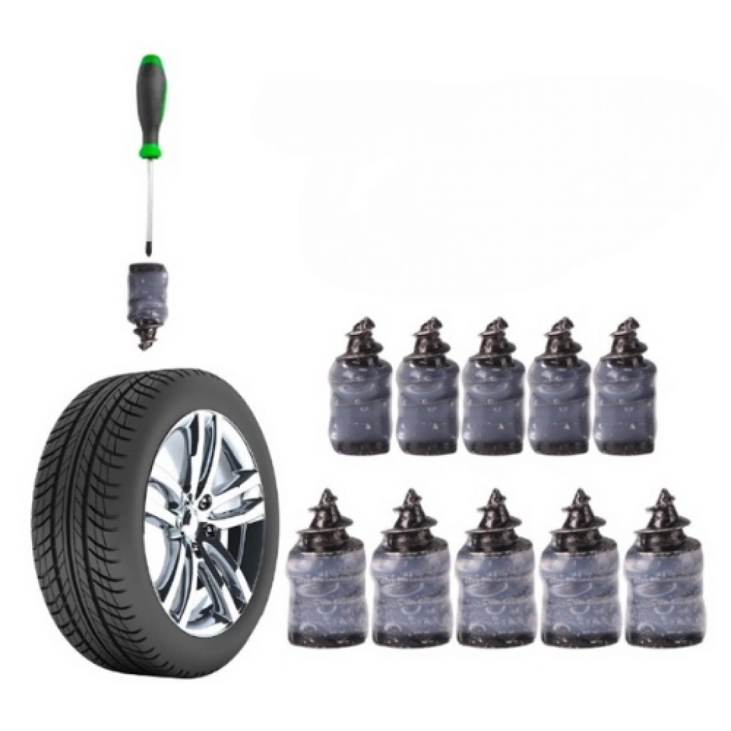 LASTİK TAMİR KİTİ KAUÇUK VİDA SETİ1. Lastiğe zarar vermez, hava kaçağı olmaz. Lastik yarasına tamir vidasını takarak basit ve verimli bir lastik onarımı sağlayabilirsiniz.2. Lastikte yüksek bağlantı mukavemetine ve iyi sızdırmazlık performansına sahiptir,.3. Kullanımı kolay, bu lastik tamir vidası ile kendiniz lastik tamir edebilir, bir oto tamir dükkanı bulmaya gerek yoktur, ekonomik ve zaman tasarrufu sağlar.4. Yaygın olarak kullanılan alanları, profesyonel delinme tamir vidası olarak, otomobil, motosiklet, kamyon, otobüs ve tarım lastikleri için kullanılabilir.Paket içeriği ve Uygulama kapsamı:5 adet Küçük boyut: 0.1mm-3 mm için kullanılabilir5 adet Büyük boy: 3 mm-5 mm için kullanılabilirMalzeme: kauçuk