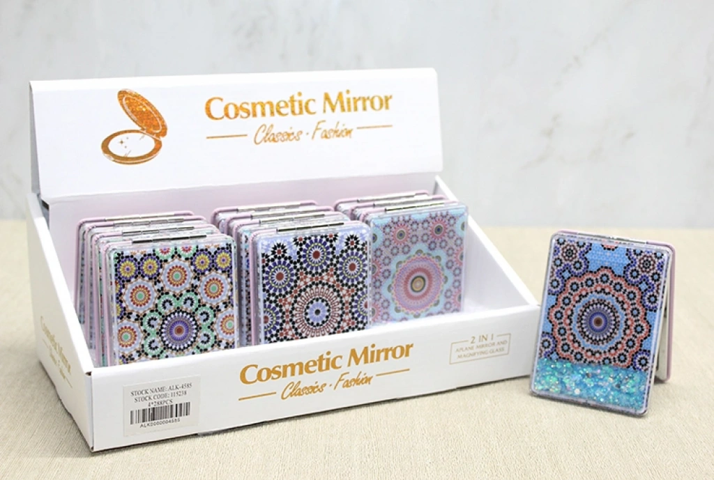 MANDALA DESENLİ HAREKETLİ SULU EL AYNASI - MODEL 1Ürün ÖzellikleriMandala Desenli Hareketli Sulu El Aynası - Model 1, mandala motifleriyle tasarlanmış estetik görünümü ve iç kısmındaki hareketli sıvı detayıyla dikkat çeken dekoratif bir el aynasıdır. Ön yüzeyinde yer alan mandala desenli baskı, ürüne sanatsal ve özgün bir karakter kazandırırken iç kısmındaki sıvı ve hareketli parçacıklar aynayı dinamik bir görünüme taşır. Kompakt yapısıyla çanta içinde rahatlıkla taşınabilen bu model, günlük kullanım için pratik bir mandala desenli el aynası alternatifi sunar. Hareketli dış tasarımı sayesinde klasik aynalardan ayrılan hareketli sulu ayna özelliği ürüne eğlenceli ve dikkat çekici bir detay katar. 8,5x6 cm boyutundaki ölçüsü sayesinde elde rahat tutulur ve çanta içinde fazla yer kaplamaz. Görselde yer alan modellerden biri karışık olarak gönderilir. Hem kişisel kullanım hem de özel günler için değerlendirilebilecek şık bir hediyelik el aynası seçeneğidir.Ürün Teknik ÖzellikleriÖzellikAçıklamaÜrün AdıMandala Desenli Hareketli Sulu El Aynası - Model 1Boyut8,5 x 6 cmTasarımMandala Desenli ve Hareketli Sulu İç YapıGönderimModellerden Biri Karışık Olarak GönderilirKullanım AlanıKişisel Kullanım ve HediyelikPaket İçeriği1 Adet Mandala Desenli Hareketli Sulu El Aynası - Model 1