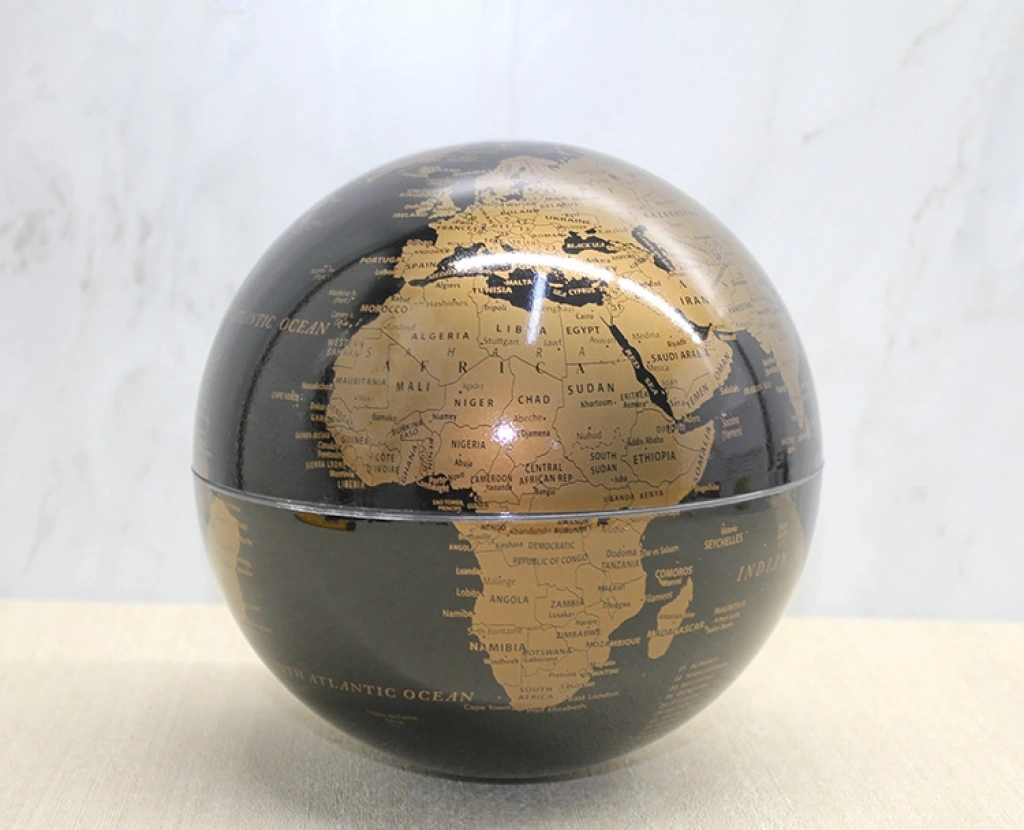 MASAÜSTÜ DÖNEN DÜNYA KÜRE - MODEL 9Ürün ÖzellikleriMasaüstü Dönen Dünya Küre - Model 9, 20 cm çapıyla dikkat çekici ve modern bir dekoratif tasarıma sahiptir. Siyah zemin üzerine altın tonlu kıta detayları, ürüne güçlü ve prestijli bir görünüm kazandırır. Parlak yüzey yapısı sayesinde ışıkla birlikte estetik bir yansıma oluşturur ve bulunduğu ortamda sofistike bir hava yaratır. Serbest dönebilen mekanizması, kürenin rahatça çevrilmesini sağlar ve hem dekoratif hem işlevsel kullanım sunar. Çalışma masaları, yönetici odaları ve ofis ortamları için şık bir tamamlayıcıdır. Büyük çapı sayesinde daha iddialı bir dekoratif etki oluşturur ve güçlü tasarım çizgileriyle öne çıkar. Modern ofis konseptlerine uyum sağlayan yapısıyla öne çıkan bir masaüstü dünya küresi seçeneğidir. Siyah ve altın kontrastıyla lüks bir atmosfer oluşturmak isteyenler için ideal bir şık dönen dekoratif dünya küre alternatifidir.Ürün Teknik ÖzellikleriÖzellikAçıklamaÜrün AdıMasaüstü Dönen Dünya Küre - Model 9Çap20 cmTasarımSiyah Zemin Altın Kıta Detaylı AtlasFonksiyonSerbest Dönen Küre MekanizmasıKullanım AlanıEv, Ofis, Yönetici Masası, KitaplıkPaket İçeriği1 Adet Masaüstü Dönen Dünya Küre - Model 9