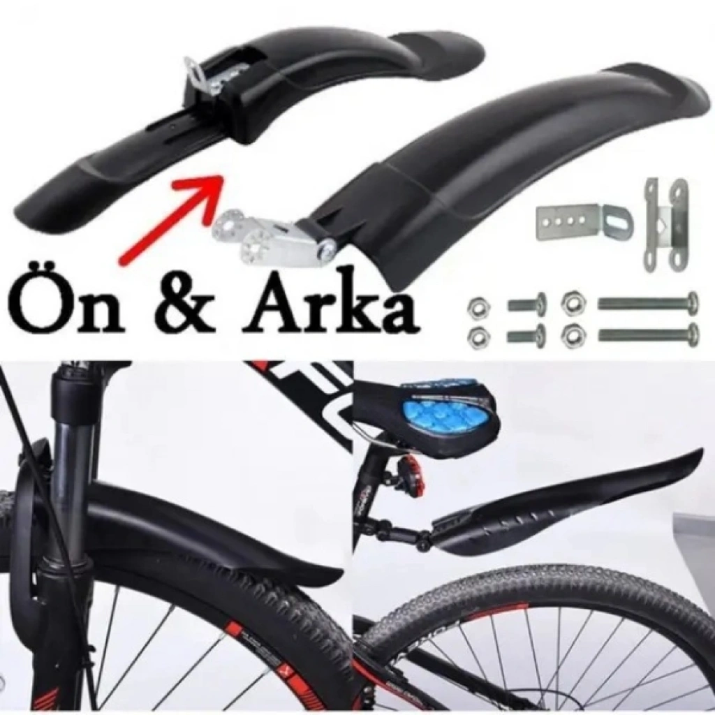 ÖN VE ARKA BİSİKLET ÇAMURLUK SETİ Ürün ÖzellikleriYağmurlu havalarda ve çamurlu yollarda sürüş keyfiniz yarıda kalmasın! Ön ve Arka Bisiklet Çamurluk Seti, sizi ve bisikletinizi su sıçramalarına, çamura ve küçük taşlara karşı etkin bir şekilde korur. Yüksek kaliteli esnek plastik malzemeden üretilen çamurluklar, darbelere karşı dayanıklı olmasının yanı sıra hafif yapısıyla bisikletinize ek yük bindirmez. Aerodinamik tasarımı sayesinde rüzgar direncini minimuma indirirken, siyah mat kaplamasıyla her türlü bisiklet modeline şık ve sportif bir görünüm katar. Dağ bisikleti (MTB), şehir bisikleti ve yol bisikletleri ile uyumlu olan bu set, kutu içeriğinde yer alan metal bağlantı aparatları ve vidaları sayesinde saniyeler içinde kolayca monte edilebilir. Hem ön hem de arka tekerlek için tam koruma sağlayan bu set, dört mevsim sürüş konforunuzu artırır.Ürün Teknik ÖzellikleriÖzellikAçıklamaSet İçeriği1 Adet Ön Çamurluk & 1 Adet Arka ÇamurlukMalzemeKırılmaya Dayanıklı, Esnek Polipropilen PlastikUyumluluk20", 24", 26", 27.5" ve 29" Jant BisikletlerMontajVida ve Metal Bağlantı Aparatları Dahil (Kolay Kurulum)RenkSiyahTasarımGeniş Açılı Koruma ve Aerodinamik FormAvantajıHafif Yapı, Kir Tutmayan Yüzey, Uzun Ömürlü KullanımPaket İçeriği1 Adet Ön Çamurluk, 1 Adet Arka Çamurluk, Montaj Vida ve Aparat Seti.