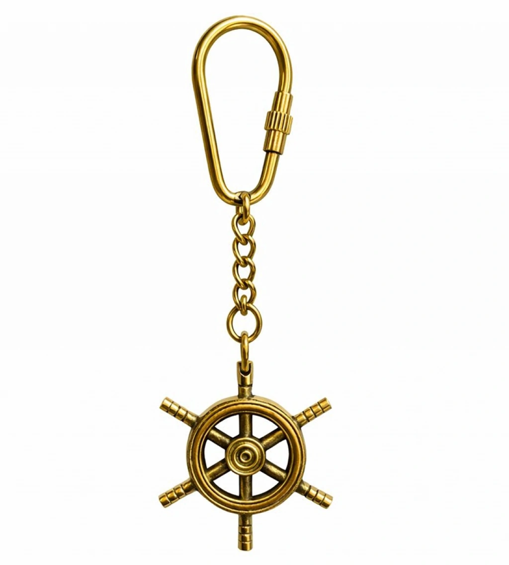 PİRİNÇ DÜMEN ANAHTARLIK - MODEL 2Ürün ÖzellikleriPirinç Dümen Anahtarlık - Model 2, deniz tutkunları ve koleksiyon severler için özel olarak tasarlanmış, klasik hatlara sahip estetik bir aksesuardır. 12 cm toplam uzunluğu ile dikkat çeken bu model, anahtarlarınızı bir arada tutarken aynı zamanda şık bir duruş sergiler. Pirinç görünümlü kaliteli malzeme yapısı sayesinde darbelere ve aşınmaya karşı direnç gösteren ürün, uzun ömürlü bir kullanım vaat eder. Geleneksel gemi dümeni figürü, ince işçilikle detaylandırılarak marin temalı dekorasyon meraklıları için ideal bir parça haline getirilmiştir. Sağlam metal halkası ve zincir bağlantısı, anahtarlarınızın güvenle taşınmasını sağlar. Bu pirinç anahtarlık, hem günlük kullanımda hem de çanta süsü olarak estetik bir tamamlayıcıdır. Denizci ruhunu her an yanınızda taşımanıza imkan tanıyan bu dümen figürlü anahtarlık, sevdikleriniz için de oldukça anlamlı ve kaliteli bir hediyelik eşya seçeneği oluşturur.Ürün Teknik ÖzellikleriÖzellikAçıklamaÜrün AdıPirinç Dümen Anahtarlık - Model 2Boyut12 cmMalzemePirinç Görünümlü Kaliteli MetalTasarımGeleneksel Dümen FormuRenkAntik Altın / PirinçBağlantı TipiMetal Zincir ve HalkaKullanım AlanıAnahtarlık, Çanta Aksesuarı, Marin DekorasyonPaket İçeriği1 Adet Pirinç Dümen Anahtarlık - Model 2 (12 cm)
