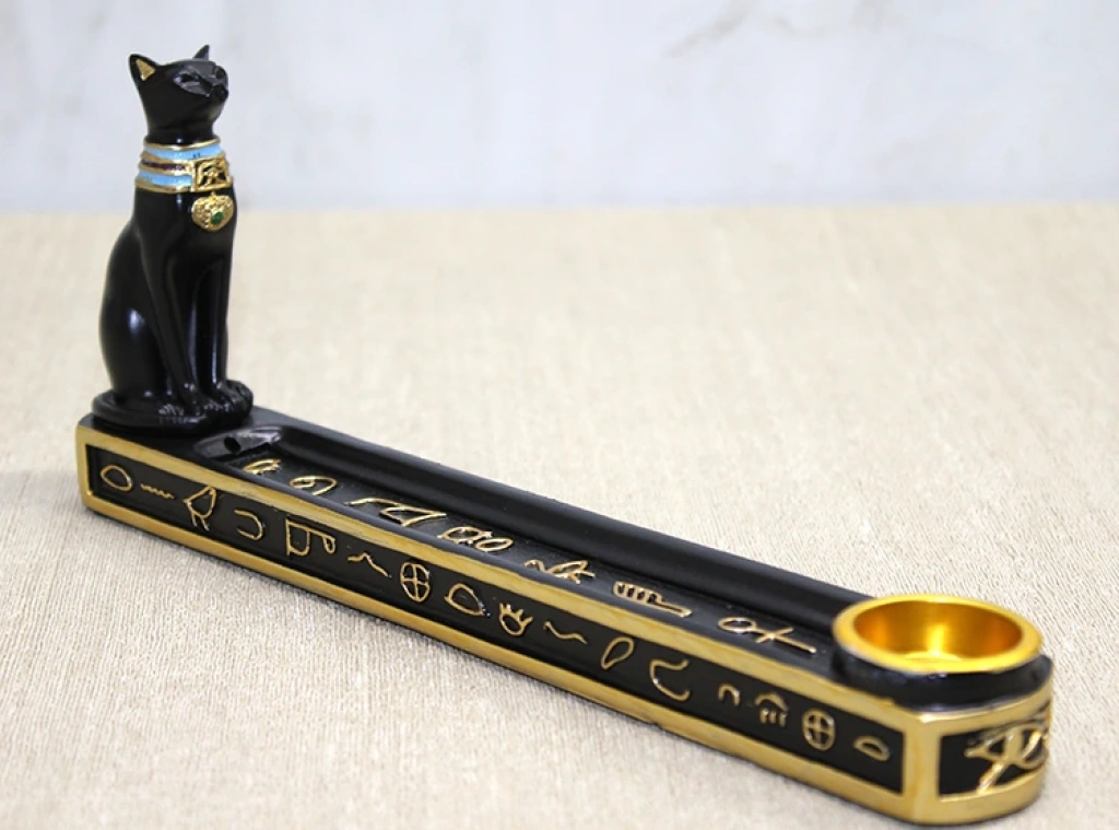 POLYESTER MISIR KEDİSİ TÜTSÜLÜKÜrün ÖzellikleriPolyester Mısır Kedisi Tütsülük, antik Mısır kültüründen ilham alınarak tasarlanmış dekoratif ve işlevsel bir tütsülük modelidir. 25 cm uzunluğundaki yapısı sayesinde tütsü çubuklarını güvenli ve düzenli bir şekilde kullanmayı sağlarken, üzerinde yer alan Mısır kedisi figürü ürüne mistik ve estetik bir hava katar. Siyah ve altın detayların birleşimi göz alıcı bir şıklık sunarken, polyester malzemeden üretilmiş olması ürüne sağlamlık, hafiflik ve uzun ömür kazandırır. Hem tütsü kullanımını kolaylaştıran hem de bulunduğu ortamın dekorasyonuna karakter katacak özel bir tasarımdır. Mısır temalı objeleri sevenler ve etkileyici dekoratif parçalar arayanlar için ideal bir seçimdir.Paket İçeriği1 adet Polyester Mısır Kedisi Tütsülük
