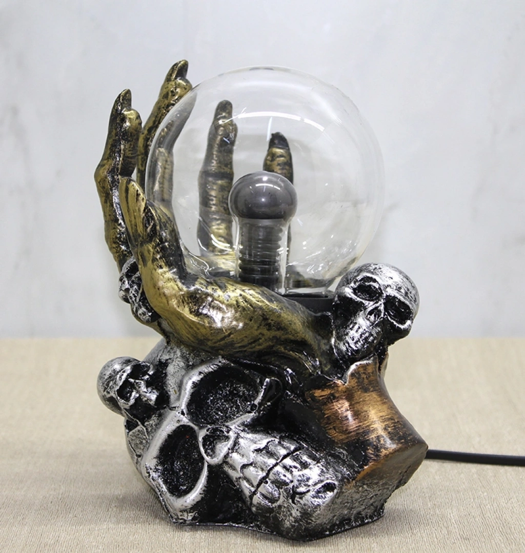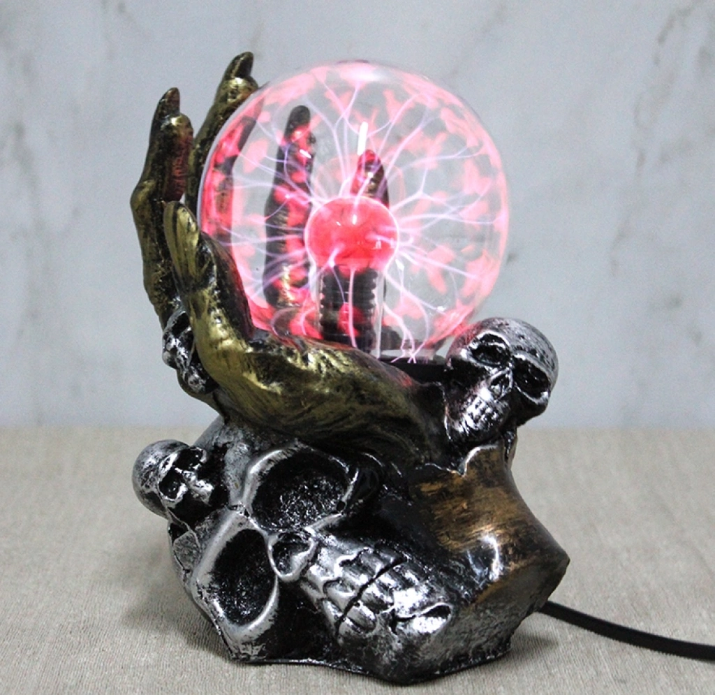 POLYESTER PLAZMA LAMBA MODEL 2Ürün ÖzellikleriPolyester Plazma Lamba Model 2, karanlık temalı ve güçlü görsel etkisiyle dekoratif aydınlatma ürünleri arasında fark yaratan özel bir tasarıma sahiptir. 11x18 cm ölçülerindeki kompakt yapısı sayesinde masa üstü, raf, vitrin, çalışma masası, oyun odası ve genç odası dekorasyonlarında rahatlıkla kullanılabilir. Plazma cam küre içerisinde yer alan elektrik ışınları, dokunmaya duyarlı yapısı sayesinde temas edildiğinde elinizin yönüne doğru hareket ederek dikkat çekici bir görsel deneyim sunar. Kafatası detaylı polyester gövdesi, ürüne gotik ve modern bir hava kazandırırken aynı zamanda sağlam ve uzun ömürlü bir kullanım sağlar. Ortam ışığını loş ve etkileyici bir ambiyansa dönüştüren bu plazma lamba, dekorasyonuna sıra dışı bir dokunuş katmak isteyenler için ideal bir tercihtir. Koleksiyonluk obje arayanlar, oyun ve film temalı alanlar oluşturanlar ya da farklı bir hediye alternatifi isteyenler için güçlü bir görsel etki sunar.Paket İçeriği1 adet Polyester Plazma Lamba Model 2