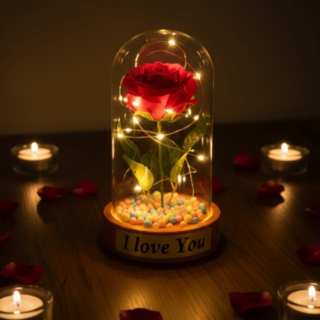 RENKLİ TOPLU LEDLİ GÜL FANUSÜrün ÖzellikleriRenkli toplu ledli gül fanus, canlı detayları ve sıcak ışık etkisiyle dekorasyona enerjik ve romantik bir hava katan şık bir üründür. Şeffaf fanus içerisinde yer alan tekli yapay gül, taban kısmındaki renkli toplar ile birlikte görsel olarak dikkat çekici bir bütünlük sunar. Sahip olduğu gün ışığı LED aydınlatma sayesinde yumuşak ve huzur verici bir ışık yayarak masa, komodin ve raf üzerinde estetik bir ambiyans oluşturur. Kompakt ölçüsüyle yer kaplamadan kullanılabilen bu model, özellikle özel günlerde dekoratif gül fanus arayanlar için ideal bir tercihtir. Model seçimi yapılamayan ürün, görsellerde yer alan tasarımlardan biri olacak şekilde karışık model gönderimi yapılmaktadır.Ürün Teknik Özellikleri Özellik Açıklama Ürün Adı Renkli Toplu Ledli Gül Fanus Boyut 10 x 18 cm Aydınlatma Gün ışığı LED Tasarım Şeffaf fanus, tekli gül Detay Taban kısmında renkli toplar Model Karışık gönderilir Kullanım Alanı Masa, komodin, raf Kullanım Amacı Dekoratif ve hediyelik Paket İçeriği1 adet renkli toplu ledli gül fanus