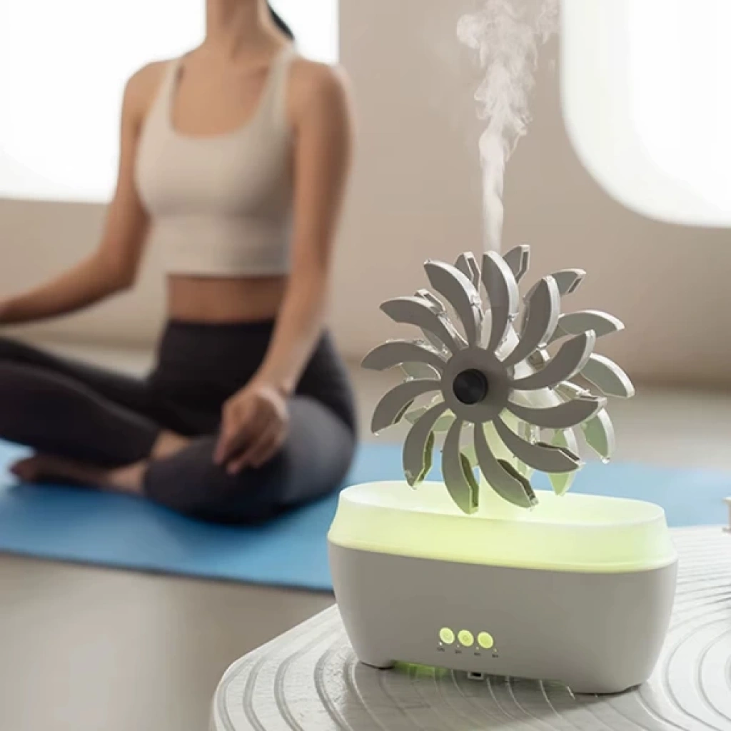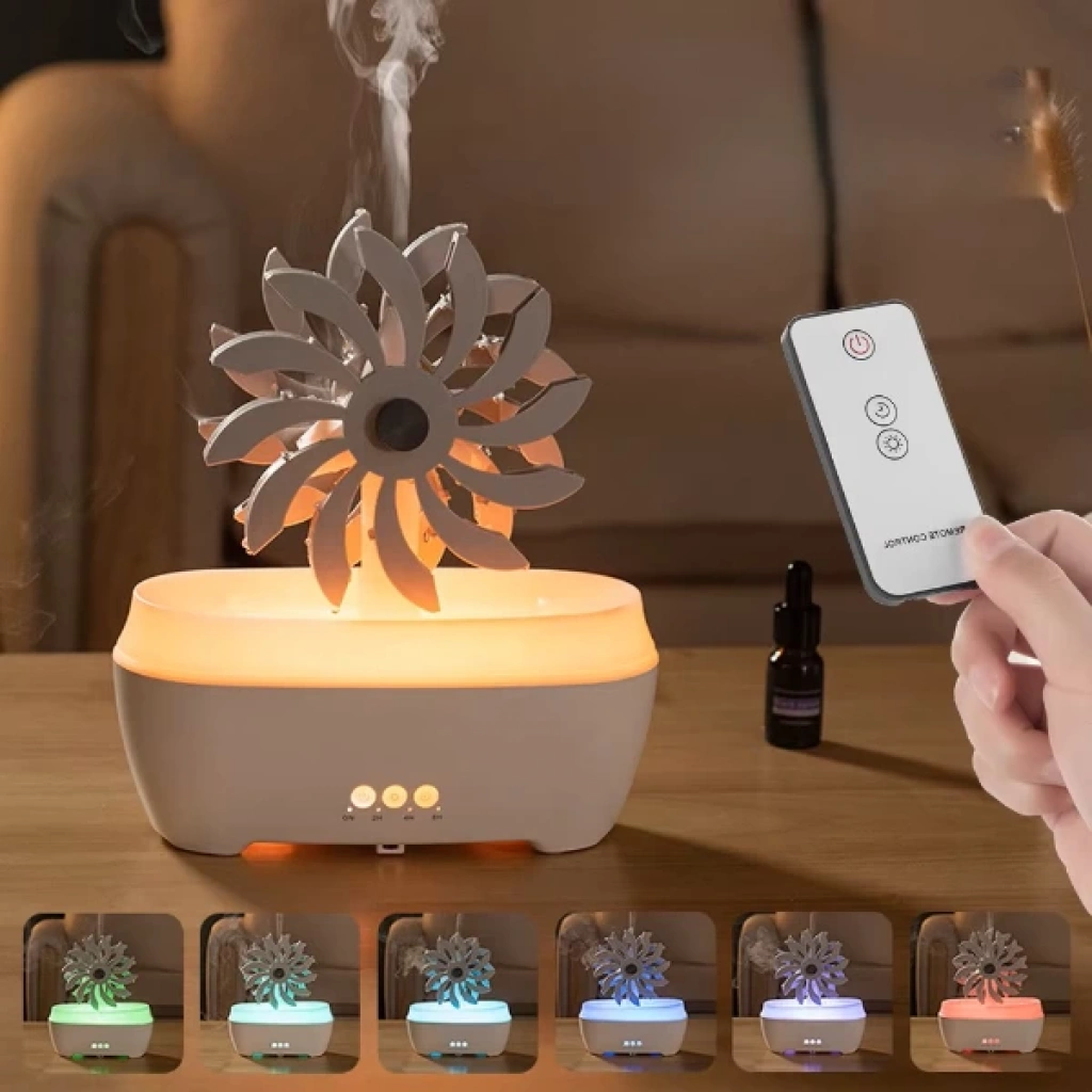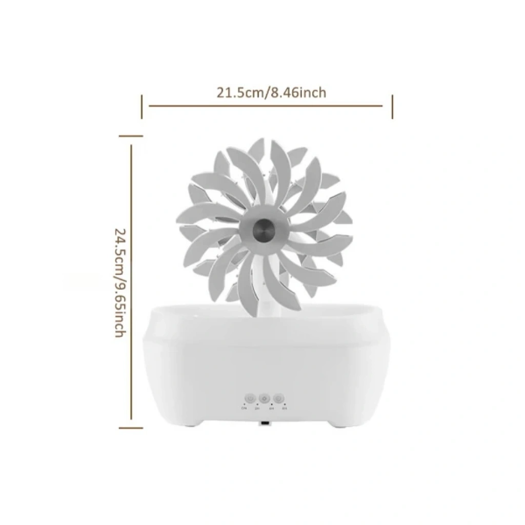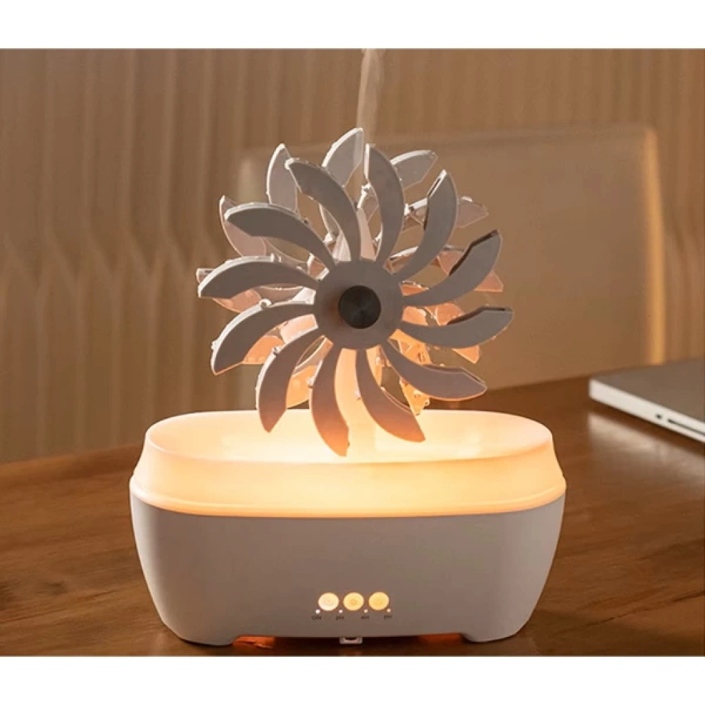 RÜZGAR DEĞİRMENİ HAVA NEMLENDİRİCİÜrün ÖzellikleriRüzgar değirmeni tasarımlı hava nemlendirici 300 ml su haznesiyle ortama ideal nem dengesini sağlar. Uzaktan kumandası sayesinde kolayca kontrol edilebilir ve RGB ışık fonksiyonlarıyla farklı renklerde hoş bir ambiyans yaratır. Aromatik yağlarla kullanılabilen cihaz, bulunduğu ortama ferahlık ve hoş koku katar. Üst kısmındaki dekoratif değirmen yavaşça hareket ederek görsel bir şıklık sunar. Sessiz çalışmasıyla uyku sırasında veya çalışma ortamında rahatsızlık vermez, aynı zamanda dekoratif tasarımıyla ev ve ofislerde modern bir görünüm sağlar.Paket İçeriği1 adet Rüzgar Değirmeni Hava Nemlendirici