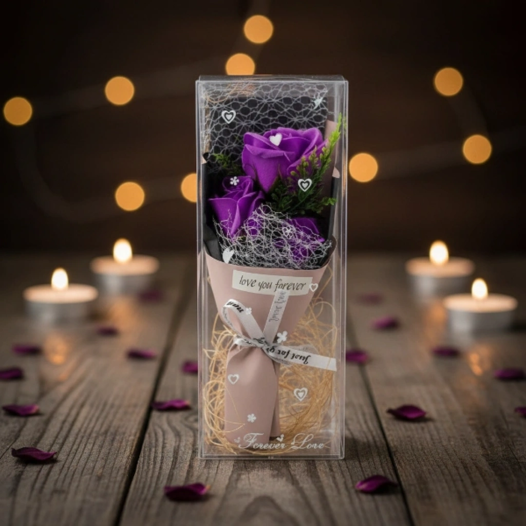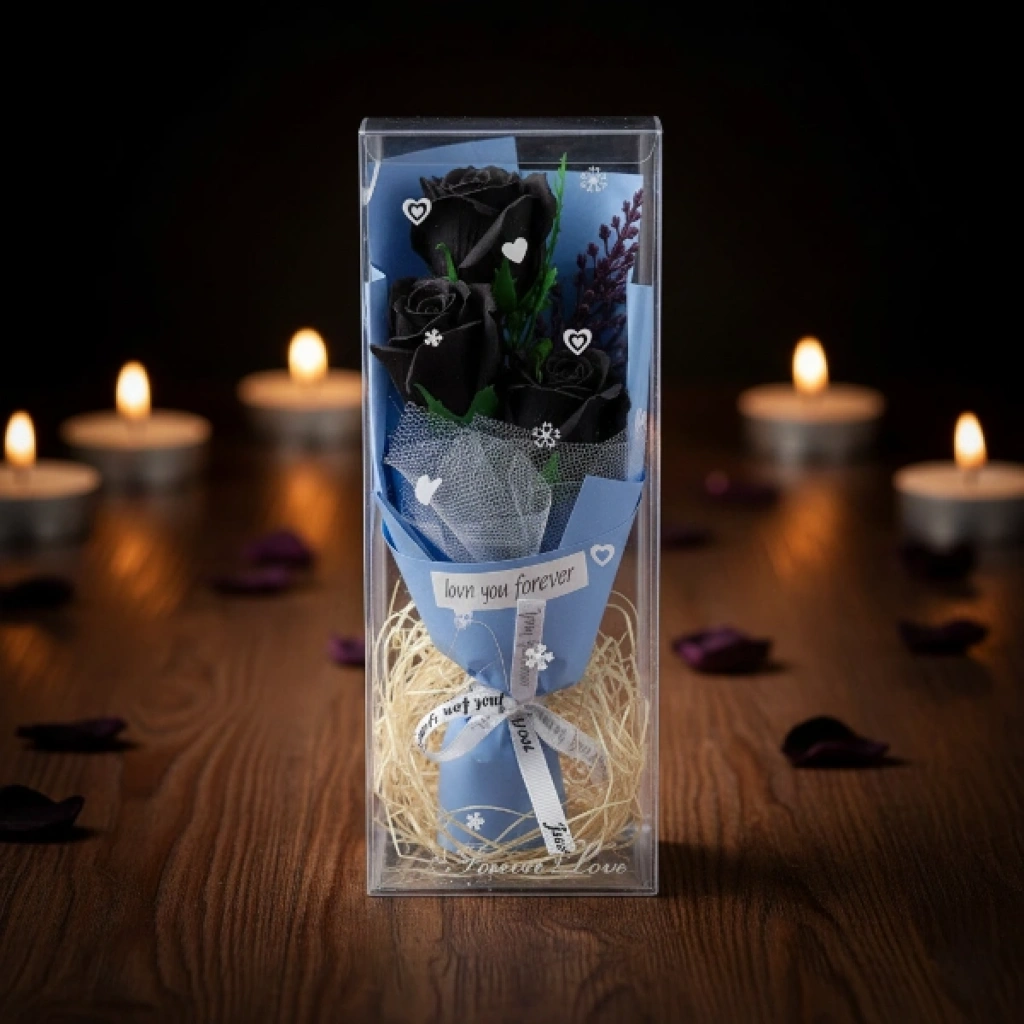 ŞEFFAF KUTULU ÜÇ GÜL BUKETİÜrün ÖzellikleriŞeffaf kutulu üç gül buketi, zarif ve romantik tasarımıyla özel günlerde anlamlı bir hediye alternatifi sunar. Şeffaf koruyucu kutu içerisinde sunulan üçlü gül aranjmanı, hem estetik bir görünüm sağlar hem de ürünün formunu uzun süre korumasına yardımcı olur. Minimal ve şık tasarımı sayesinde masa, komodin ve vitrin dekorasyonunda rahatlıkla sergilenebilir. Üçlü gül buketi tasarımı, sevgi ve zarafeti simgeleyen klasik bir hediye seçeneğidir. Özel günlerde, doğum günü, yıl dönümü veya sürpriz hediyelerde tercih edilebilen şeffaf kutulu gül buketi, dekoratif yapısı ile kalıcı bir hatıra niteliği taşır. Renk seçimi yapılamaz, ürün görseldeki renklerden biri karışık olarak gönderilir. Dekoratif gül aranjmanı, hem romantik hem de şık bir sunum arayanlar için ideal bir tercihtir.Ürün Teknik Özellikleri Özellik Açıklama Ürün Adı Şeffaf Kutulu Üç Gül Buketi Malzeme Dekoratif yapay gül ve şeffaf kutu Renk Görseldeki renklerden biri, karışık gönderim Kullanım Alanı Hediye ve dekoratif süs Paket İçeriği1 adet şeffaf kutulu üç gül buketi (renkler karışık gönderilir)