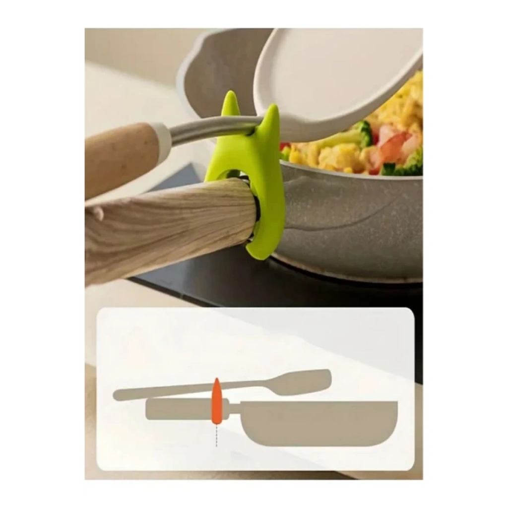 SİLİKON TAVA TENCERE KAŞIK TUTUCUÜrün ÖzellikleriSilikon kaşık tutucu, yemek hazırlarken kaşık veya spatulaları hijyenik ve pratik bir şekilde tutmak için tasarlanmıştır. Isıya dayanıklı ve esnek silikon malzemeden üretilmiştir, böylece yüksek sıcaklıklarda bile güvenle kullanılabilir. Tencere veya tava sapına kolayca monte edilebilen tasarımı sayesinde kaşığın sabit durmasını sağlar ve mutfak tezgâhında dağınıklığı önler. Kaymaz yapısı ile kullanım sırasında stabilite sunar. Renkli ve modern tasarımıyla mutfağınıza şıklık katar. Kolay temizlenebilir ve tekrar kullanılabilir yapısıyla uzun süreli kullanım için idealdir.Paket İçeriği1 Adet Silikon Tava Tencere Kaşık Tutucu