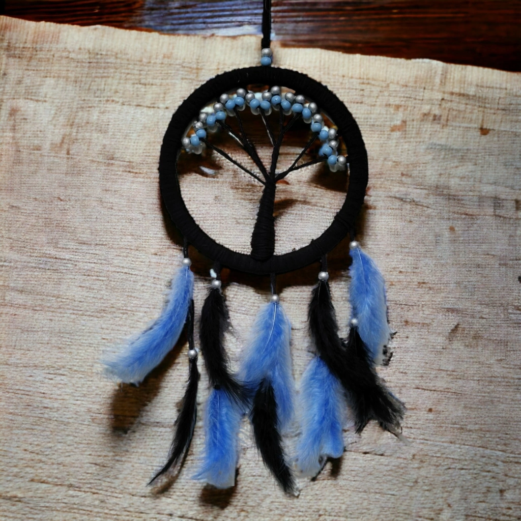 SİYAH HAYAT AĞACI RÜYA KOVUCURüya Kovan-Dream Catcher , Kuzey Amerika yerli kültürlerinde köken alan bir gelenektir. İnanışa göre, gece boyunca rüyaları süzer ve olumsuz enerjileri yakalar, sadece pozitif rüyaların geçmesine izin verir. İlginç bir detay, kovanın ortasındaki delikten geçen iyi rüyaların tüyler aracılığıyla kişiye ulaşacağına inanılır.Bir rüya kapanı ürününün içeriği genellikle şu unsurları içerir:1. **Hoop (Halka):** Genellikle ahşap veya metal bir halka, rüya kapanının temel iskeletini oluşturur.2. **Web (Örümcek Ağı):** Halkanın içine örülen ince bir ağ, olumsuz enerjileri süzmek ve iyi rüyaları yakalamak için tasarlanmıştır.3. **Tüyler:** Ağın alt kısmına takılan tüyler, yakalanan iyi rüyaları kişiye iletmek için kullanılır. Tüyler genellikle kuş tüyleri olabilir.4. **Boncuklar ve Taşlar:** Ağın üzerine yerleştirilen boncuklar veya taşlar, geleneksel olarak semboller veya enerjiyi güçlendirmek için eklenir.5. **Asılı Süslemeler:** Rüya kapanının altında asılı olan süslemeler, genellikle sembolik anlamlar taşır ve tasarımı tamamlar.Ürünler arasında farklı malzemeler, renkler ve tasarımlar bulunabilir, ancak genel olarak bu unsurlar rüya kapanlarının temel bileşenlerini oluşturur.Ürün Ölçüleri 57 cm. uzunluk22 cm. enPaket İçeriği1 adet siyah rüya kovan dream catcher