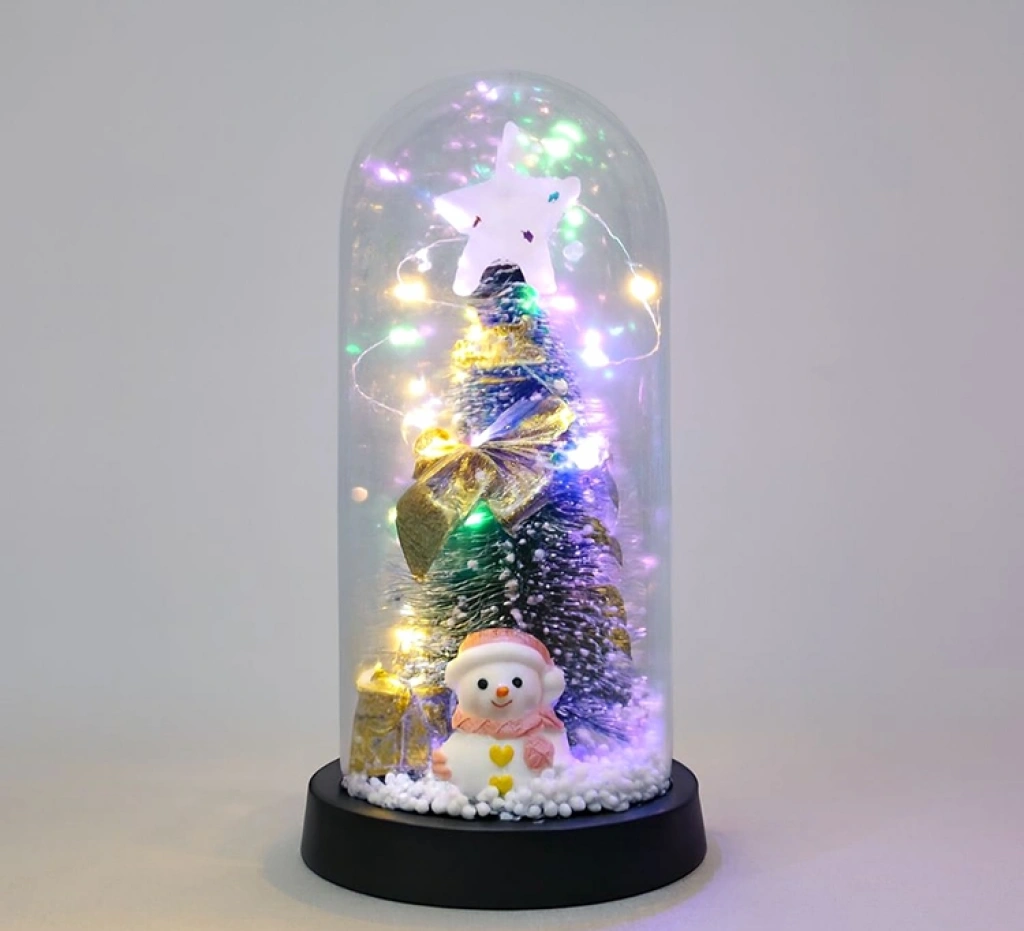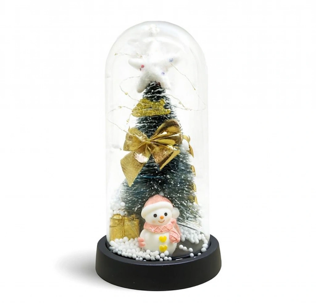 YILBAŞI TEMALI IŞIKLI DEKORATİF CAM FANUS - MODEL 7Ürün ÖzellikleriYılbaşı Temalı Işıklı Dekoratif Cam Fanus - Model 7, yeni yıl dekorasyonlarında şık ve dikkat çekici bir atmosfer oluşturmak için tasarlanmıştır. 21x11 cm ölçüsündeki kompakt ve kullanışlı yapısı sayesinde masa üstü, sehpa, konsol ve vitrin dekorasyonlarında rahatlıkla konumlandırılabilen ışıklı cam fanus, cam kubbe tasarımı ile estetik bir görünüm sunar. İç kısmında yer alan yılbaşı temalı figür ve ağaç detayları ile öne çıkan yılbaşı dekoratif fanus, çok renkli ışık efektleri sayesinde loş ortamlarda sıcak ve hoş bir ambiyans oluşturur. Siyah tabanlı yapısı sayesinde dengeli ve sabit bir duruş sergileyen dekoratif yılbaşı süsü, hem ev hem de ofis ortamlarında yeni yıl konseptini tamamlayan zarif bir tamamlayıcıdır. Küçük alanlarda bile etkili bir dekoratif görünüm sunması sayesinde pratik kullanım sağlar.Ürün Teknik Özellikleri Özellik Açıklama Ürün Adı Yılbaşı Temalı Işıklı Dekoratif Cam Fanus - Model 7 Model Model 7 Ölçü 21 x 11 cm Tema Yılbaşı Özellik Işıklı Paket İçeriği1 Adet Yılbaşı Temalı Işıklı Dekoratif Cam Fanus - Model 7