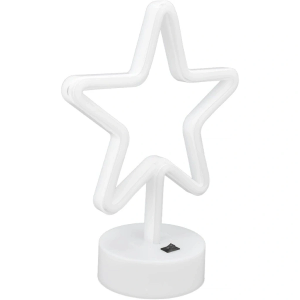 YILDIZ NEON LED LAMBAÜrün ÖzellikleriYıldız neon LED lamba, modern ve eğlenceli tasarımıyla yaşam alanlarına sıcak ve dikkat çekici bir ambiyans kazandırmak için tasarlanmıştır. Yıldız formundaki neon LED ışık, yumuşak ve göz yormayan aydınlatma sunarak dekoratif kullanım için ideal bir görünüm sağlar. Dayanıklı gövdesi uzun ömürlü kullanım desteklerken hafif yapısı sayesinde masa, komodin, raf ve vitrin gibi alanlarda kolayca konumlandırılabilir. Yaklaşık 31 cm yüksekliği ve 19 cm genişliği ile kompakt bir duruş sergileyerek bulunduğu ortama estetik bir dokunuş katar. Ev dekorasyonu, çocuk odası, kafe, ofis ve konsept parti alanlarında tercih edilebilir. Neon LED teknolojisi düşük enerji tüketimiyle verimli bir kullanım sunar ve dekoratif aydınlatmada pratik bir çözüm oluşturur.Paket İçeriği1 adet Yıldız Neon LED Lamba